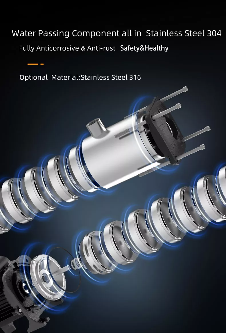 CHM12/IV Series Smart Inverter Series แนวนอนสเตนเลสสตีลแบบหลายขั้นตอนปั๊มแรงเหวี่ยงเป็นผลิตภัณฑ์ที่ค่อนข้างครบกำหนดในตลาดในปัจจุบันซึ่งมีโครงสร้างขนาดกะทัดรัดและการทำงานที่มั่นคง ส่วนประกอบที่ส่งผ่านน้ำทั้งหมดทำจากสแตนเลส AISI304 มันถูกนำมาใช้กันอย่างแพร่หลาย