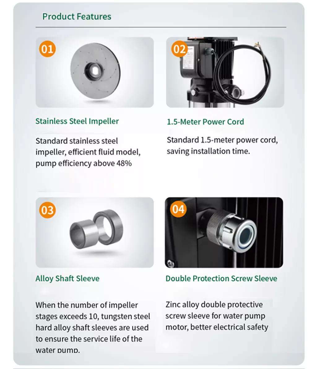 หัวปั๊มสามารถปรับได้โดยการเปลี่ยนจำนวนใบพัดให้ตรงตามความต้องการต่างๆ เหมาะสำหรับน้ำสะอาดหรือของเหลวที่มีคุณสมบัติใกล้เคียงกัน ในขณะที่บางรุ่นสามารถปรับแต่งสำหรับตัวกลางที่มีฤทธิ์กัดกร่อนได้